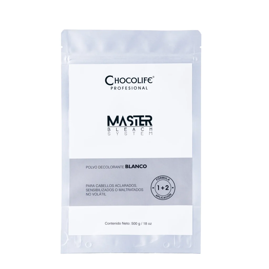 Chocolife Master Bleach System es un polvo decolorante de alto rendimiento. Su fórmula avanzada 1+2, no volátil, garantiza un proceso de decoloración más seguro y cómodo tanto para el profesional como para el cliente.